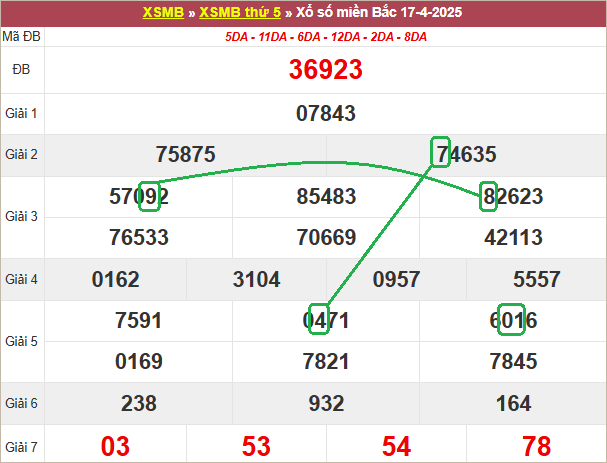 Bảng kết quả miền Bắc ngày 17/4/2025