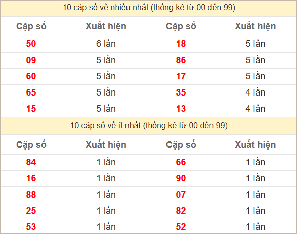 Thống kê 2 số cuối đặc biệt về nhiều nhất trong 30 tuần trở lại