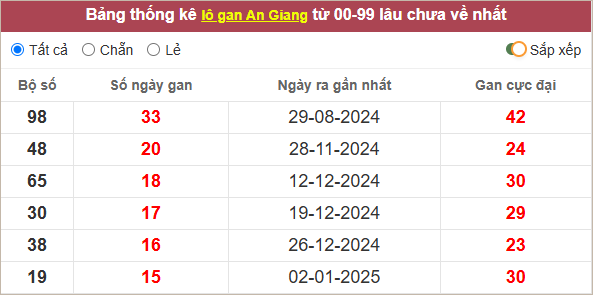 Thống kê đuôi giải đặc biệt An Giang lâu chưa về nhất tính đến ngày hôm nay: